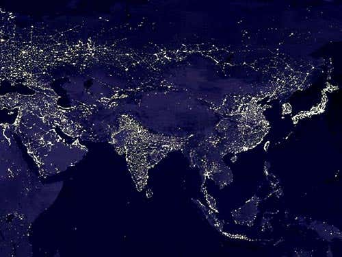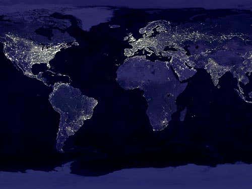 The artificial lighting shown in this composite satellite image shows the uneven spread of wealth across the world.