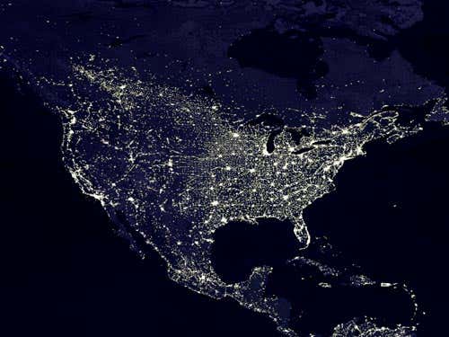 This is the distribution of night-time lights in North America, one of the richest regions in the world.