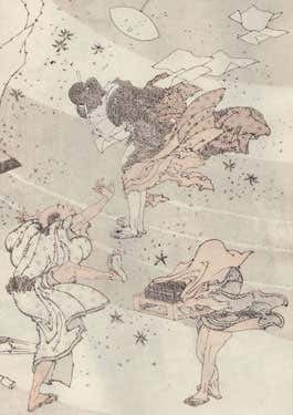 Hokusai depicts motion using not only unstable bodily positions, but also context.