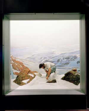 Barnes seeks out museums under renovation. In this picture of a diorama – a recreation of a real-world scene – a technician dusts a snow hare’s feet to make sure it looks at home in its icy world.
