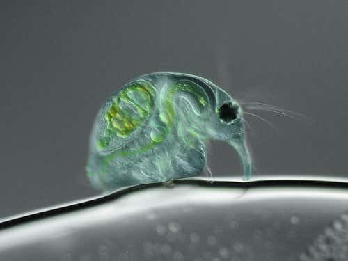 A freshwater water flea is magnified 100 times in this photo by Joan Röhl of the University of Potsdam, Germany – enough to see the microscopic processes going on beneath its translucent skin.