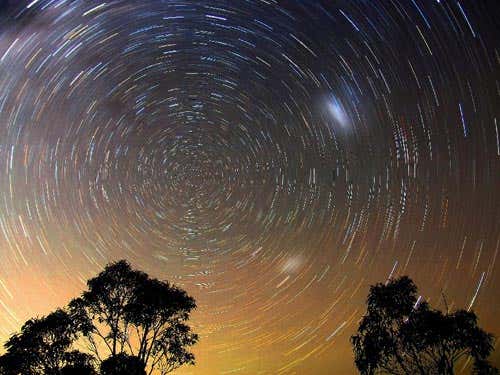 Although this photograph appears to show a dramatic shower of meteors, it is actually a 40-minute exposure of the trails made by stars as the Earth rotates.