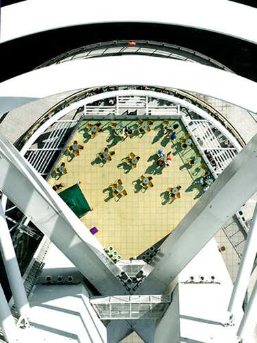 Photographer Jurgen Dabeedin took this picture looking down from the top of the www.spinnakertower.co.uk/About_The_Tower/About_The_Tower.php “>Spinnaker Tower, Portsmouth. From the ground the tower looks like sails billowing in the wind and is used to represent Portsmouth’s maritime history.