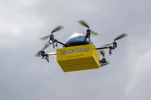 In Sydney, Australia, a drone courier service called Flirtey has created flying robots that can lift and deliver a load of up to 2 kilograms up to 3 kilometres. Initially intended to transport textbooks around the University of Sydney’s campus, the service could expand to drop off soft drinks and pizzas. Although such delivery was due to begin in March 2014, this is now unlikely because of regulatory roadblocks. These will probably prevent other commercial drone delivery services from taking off.