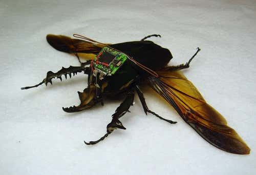 Moths may be too delicate and small to make robust surveillance cyborgs. Many insects aren’t strong enough to carry equipment – such as cameras and heat sensors – that would make them useful for these kinds of operation. So researchers at the University of California, Berkeley, with the help of the same Department of Defense programme that created the cyborg moth, turned a giant flower beetle into a cyborg. As with the moth, the electronics are implanted in pupae, but the adult beetle can also carry a battery and sophisticated equipment.