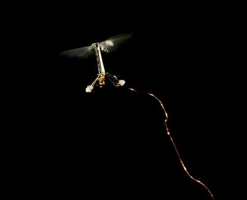 This flying robot, created at Delft University of Technology in the Netherlands, is larger than the Harvard robobee, but its 10-centimetre wingspan carries a power supply and a small camera. Better yet, it can fly for 15 minutes (it can sustain a hover for 8).