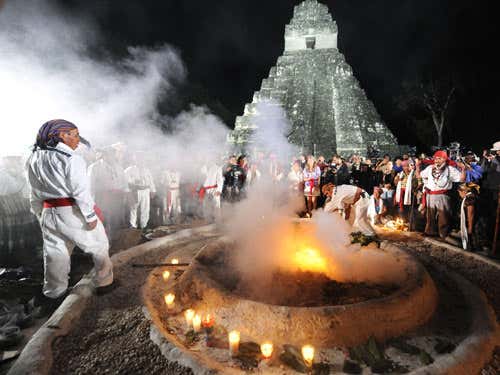 The rainforest is important for the Mayan religion, and many sites are still actively used for ceremonies, such as that held by Mayan shamans on 21 December 2012 to celebrate the end of the Mayan cycle known as Bak’tun 13 and the start of a new age.