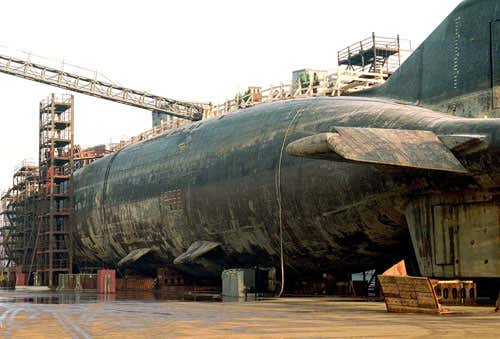 An explosion on board the Russian Oscar-II class submarine Kursk on 12 August 2000 killed 118 crew and left the vessel 108 metres down on the seabed in the Barents Sea, part of the Arctic Ocean north of Norway and Russia. In 2002, Dutch salvors raised the remains of the vessel after a 10-day underwater operation to cut off the front of the hull using a giant “bandsaw”.