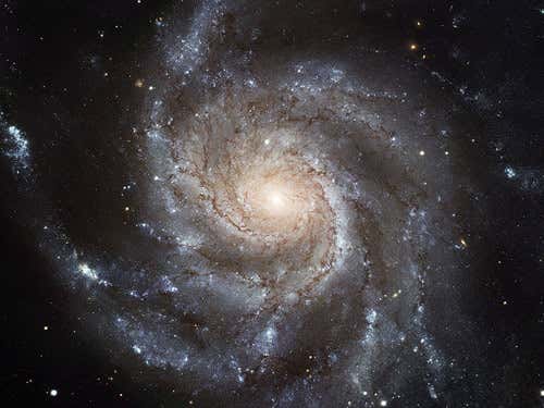But finding them could still be tricky. Spiral galaxies, like the Pinwheel galaxy (shown here), are full of dust and dark gaps. Galaxies that are naturally more uniform in brightness, like elliptical galaxies, might be better candidates in the hunt for ET.