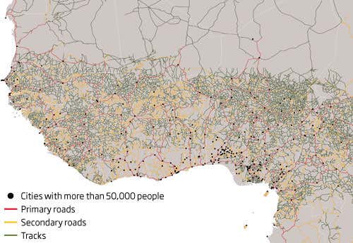Plotted onto a map, the results throw up surprises. First, less than 10% of the world’s land is more than 48 hours of ground-based travel from the nearest city.