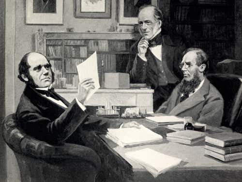 Botanist Joseph Dalton Hooker (right) and geologist Charles Lyell (centre) were important influences on Charles Darwin as he formulated his theory of evolution by natural selection. Lyell’s studies of geology showed that the Earth was much older than previously thought – giving time for the slow changes of Darwinian natural selection to create biodiversity from a common ancestor.