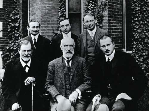 The foundations of psychology and psychiatry were developed around the turn of the 20th century, sparking debates that continue today. While Sigmund Freud is the most well-known figure in this movement, his close friends and students were also influential. This group photo from 1909 shows in the front row Freud, G. Stanley Hall and Carl Jung, and in the back Abraham Brill, Ernest Jones and Sándor Ferenczi.
