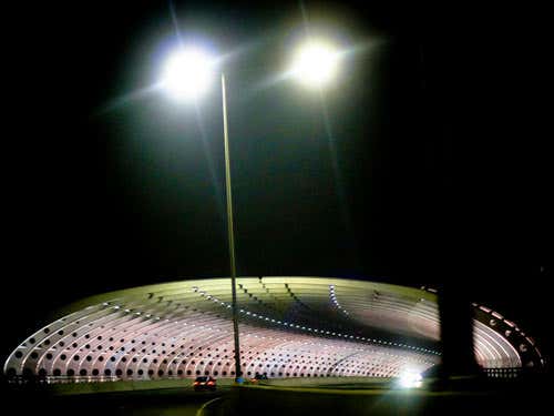 The steel frames that make up the Sound Tube block the direct travel of sound waves to adjacent high-rise buildings.