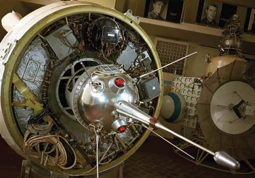 The Soviet space probe Luna 1 (a replica of which is pictured here) was the first artificial object to escape the Earth’s gravitational pull, in January 1959. Carried on the Vostok 8K72 rocket, the probe was intended to crash into the moon but missed its target by 6000 kilometres.
