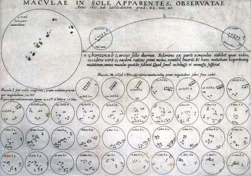 The systematic study of sunspots started with the arrival of telescopes in the early 17th century. In his History and Demonstrations Concerning Sunspots and Their Properties, published in 1613, Galileo showed how solar maculae – blemishes – moved as the sun rotated.