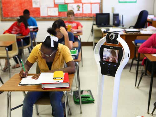In the past few years, mobile telepresence bots such as the Anybot, Double and VGo (pictured) have entered the mass market. One use they’ve found so far is to allow children to attend school remotely.