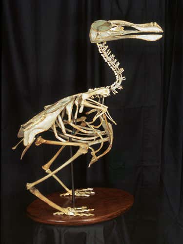 “This is a life-size sculpture of a dodo, which I built from the bones of factory-farmed chickens,” says its maker, artist Christy Rupp.