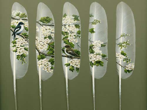 “The feathers I paint are collected off the ground by wardens during the swans’ annual moult at a reserve.”