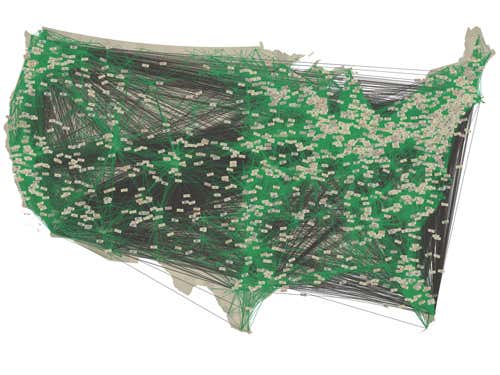 Using information from the dollar-bill tracking website Where’s George?, they built a picture of how people move from place to place.