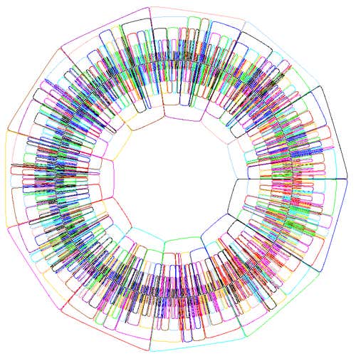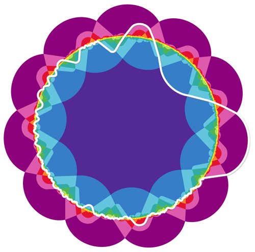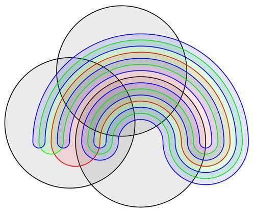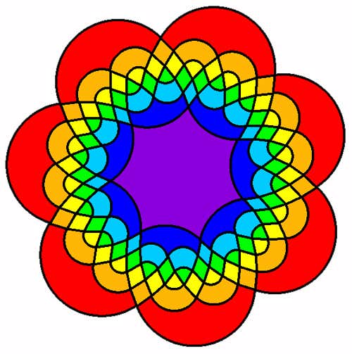 The next prime number after 7 is 11, but it was tough to find a simple, symmetric diagram for 11 sets. The best that mathematicians could do was this complex, overlapping diagram discovered by US mathematician Peter Hamburger.