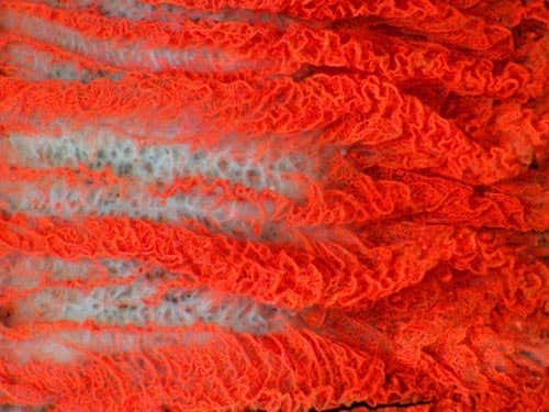 This image was created from a stack of 27 images taken at different depths and combined to give a three-dimensional appearance. The capillaries have been made visible by injecting an insoluble dye into the artery.