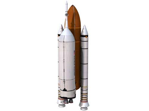 This option also requires an extra $3 billion. One version of it would delay retiring the space shuttle and use a close derivative of it, seen here, for trips to the moon. The other version would get there with a variant of the Ares V rocket. Both versions would use commercial vehicles to access the ISS, which would be extended to 2020.
