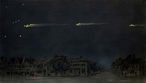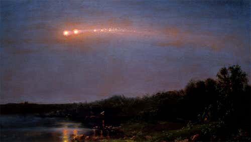 On the evening of 20 July 1860, a meteor fragmented as it grazed the Earth’s atmosphere, producing a “meteor procession” that inspired a painting by Frederic Church and a poem by Walt Whitman that ends with the following lines: